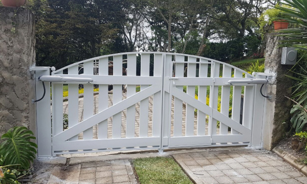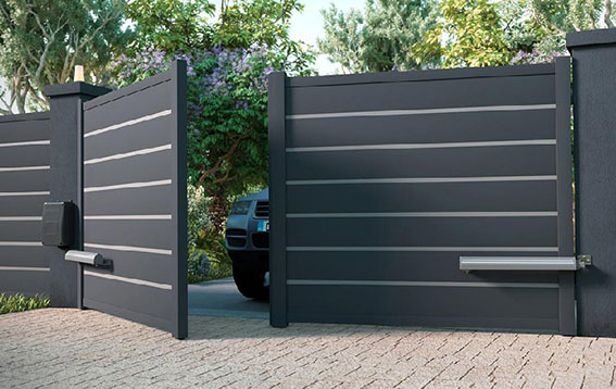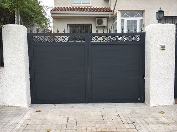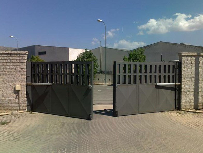 Los portones abatibles pueden ser manuales o automáticos. En su versión automatizada, incorporan motores electromecánicos de brazo articulado o pistón hidráulico, diseñados para un uso continuo y silencioso. Estos motores permiten una apertura suave y controlada, reduciendo el desgaste mecánico y aumentando la seguridad.